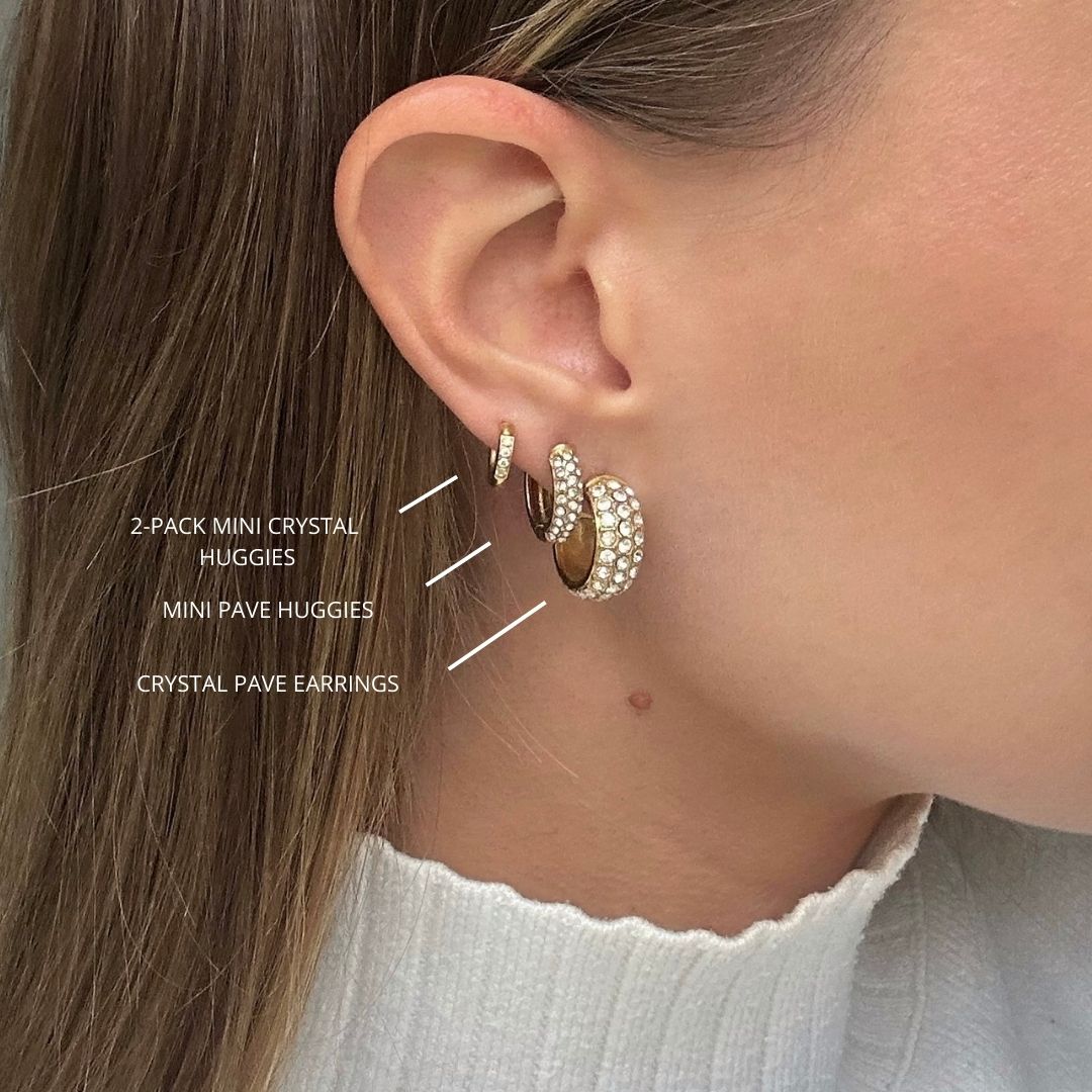 Nori's 2-Pack Mini Crystal Huggies consist of two pairs of classic earrings. They include two different sizes and are decorated with white zirconia crystals. This make them the perfect choice for an elegant look, both for everyday wear and special occasions.