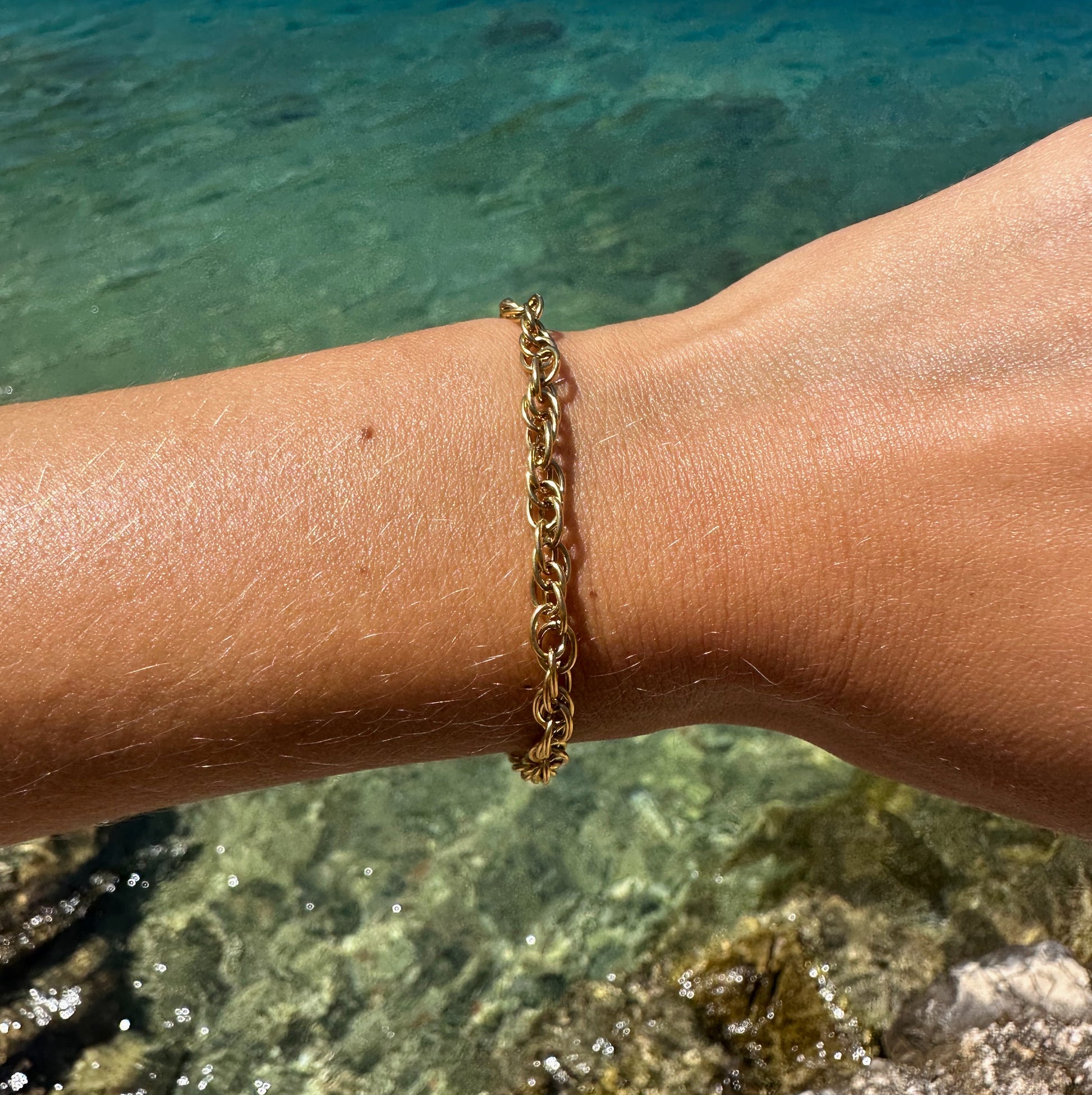 Chunky Chain Bracelet is a bracelet that truly makes you stand out. Even though the design is chunky, the bracelet rests lightly around your wrist.
