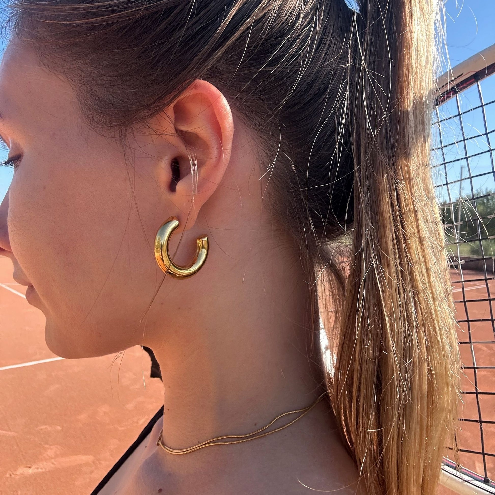 Large Chunky Hoops are perfect for a clean, classic look. Timeless in shape and just bold enough to stand out, these earrings are made to be worn every day — no matter the occasion or season.