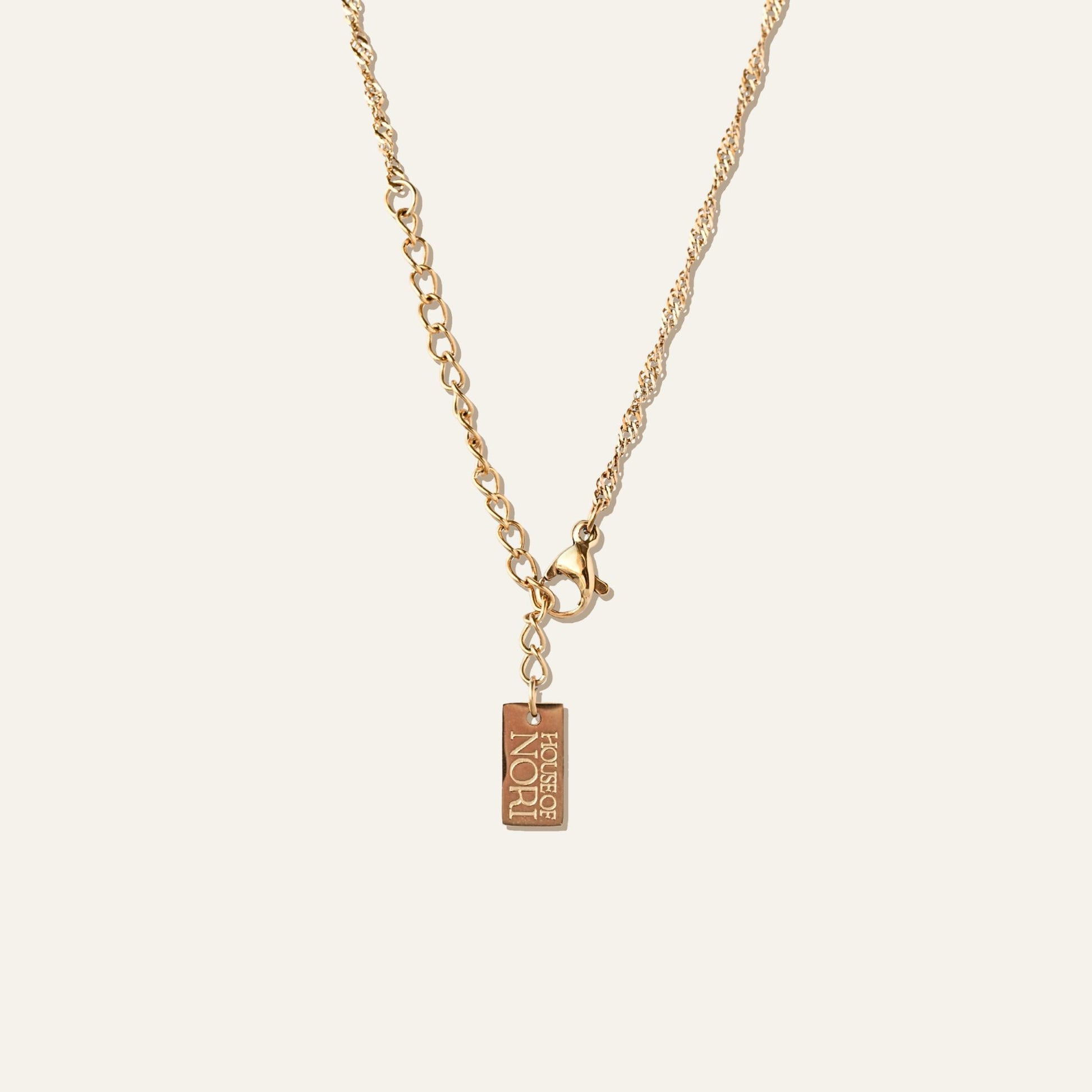 All jewelry from House of Nori is made from Stainless Steel and features an 18K gold plating. It is plated using the latest technology called PVD and combined with the choice of material, this makes all jewelry waterproof.