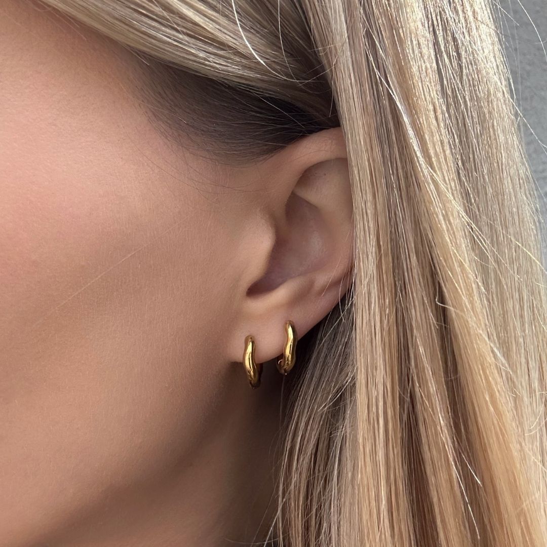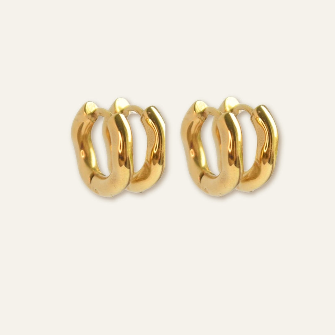 Noris 2-Pack Small Wavy Huggies är två par örhängen i samma storlek. Deras vågiga design gör dem intressanta och enkla att bära dagligen.