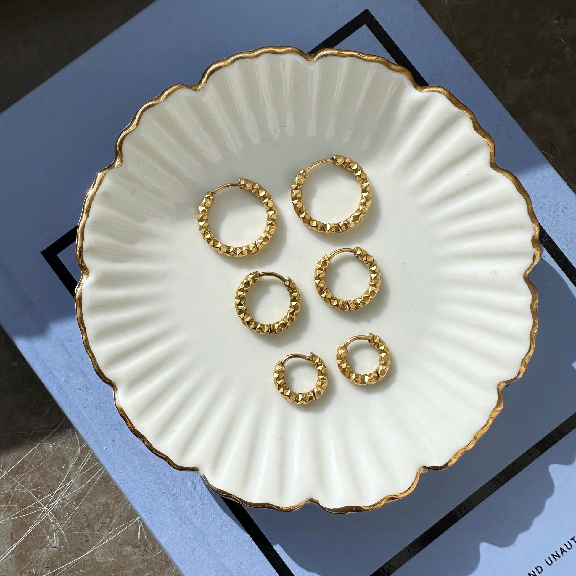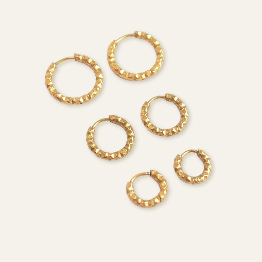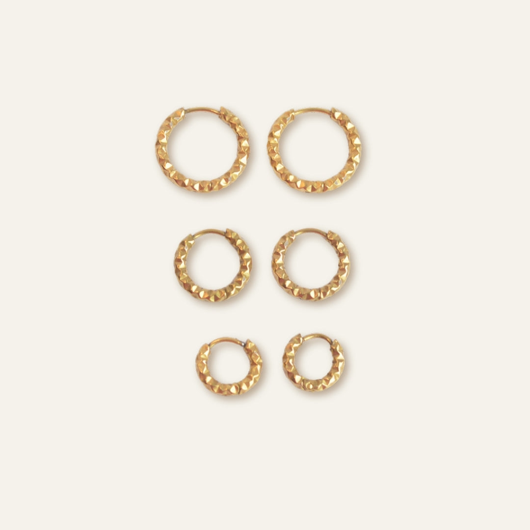 Noris 3-Pack Textured Earrings inkluderar tre par örhängen i tre olika storlekar. Örhängena har en strukturerad design och är ett säkert val för alla tillfällen.