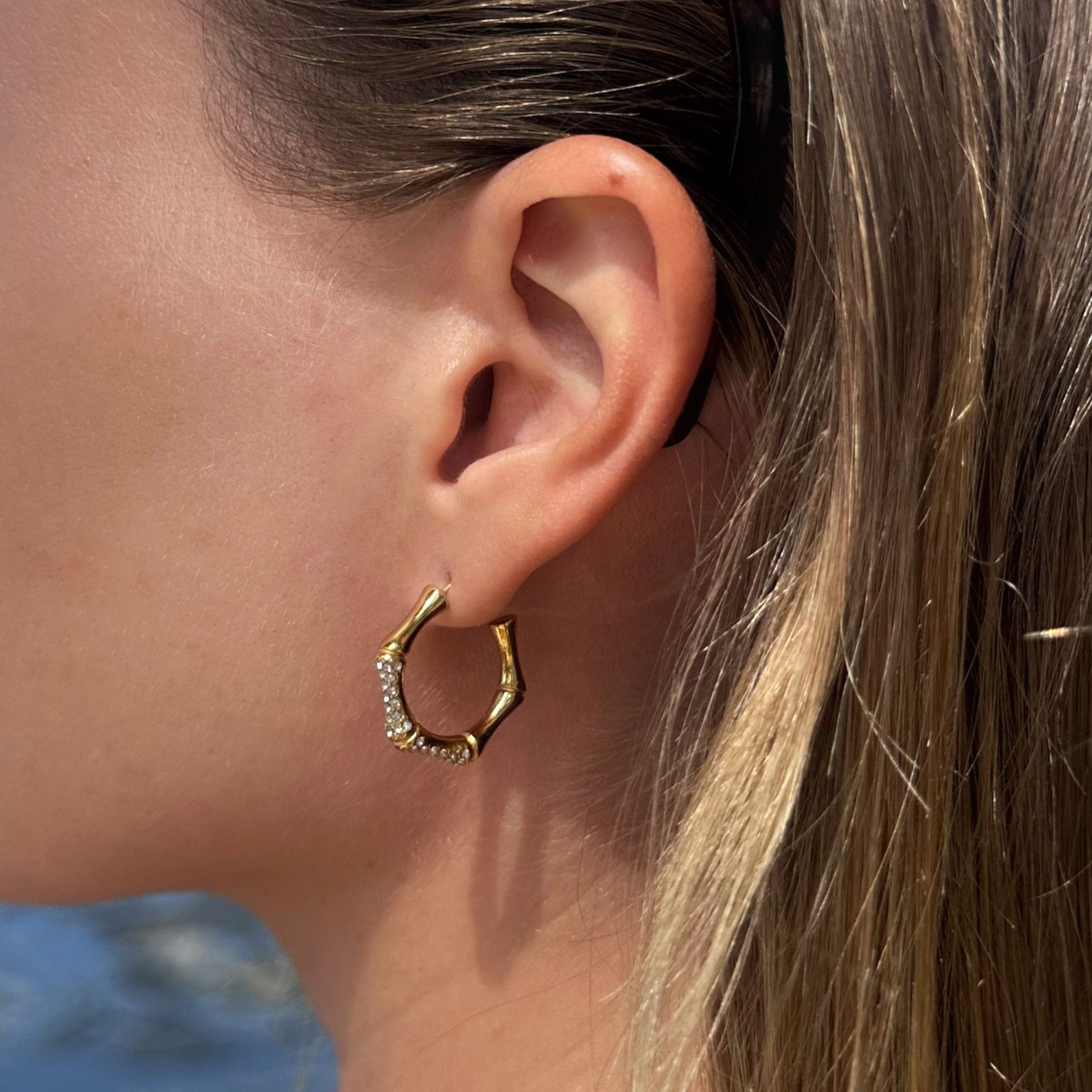 Bamboo Crystal Hoops