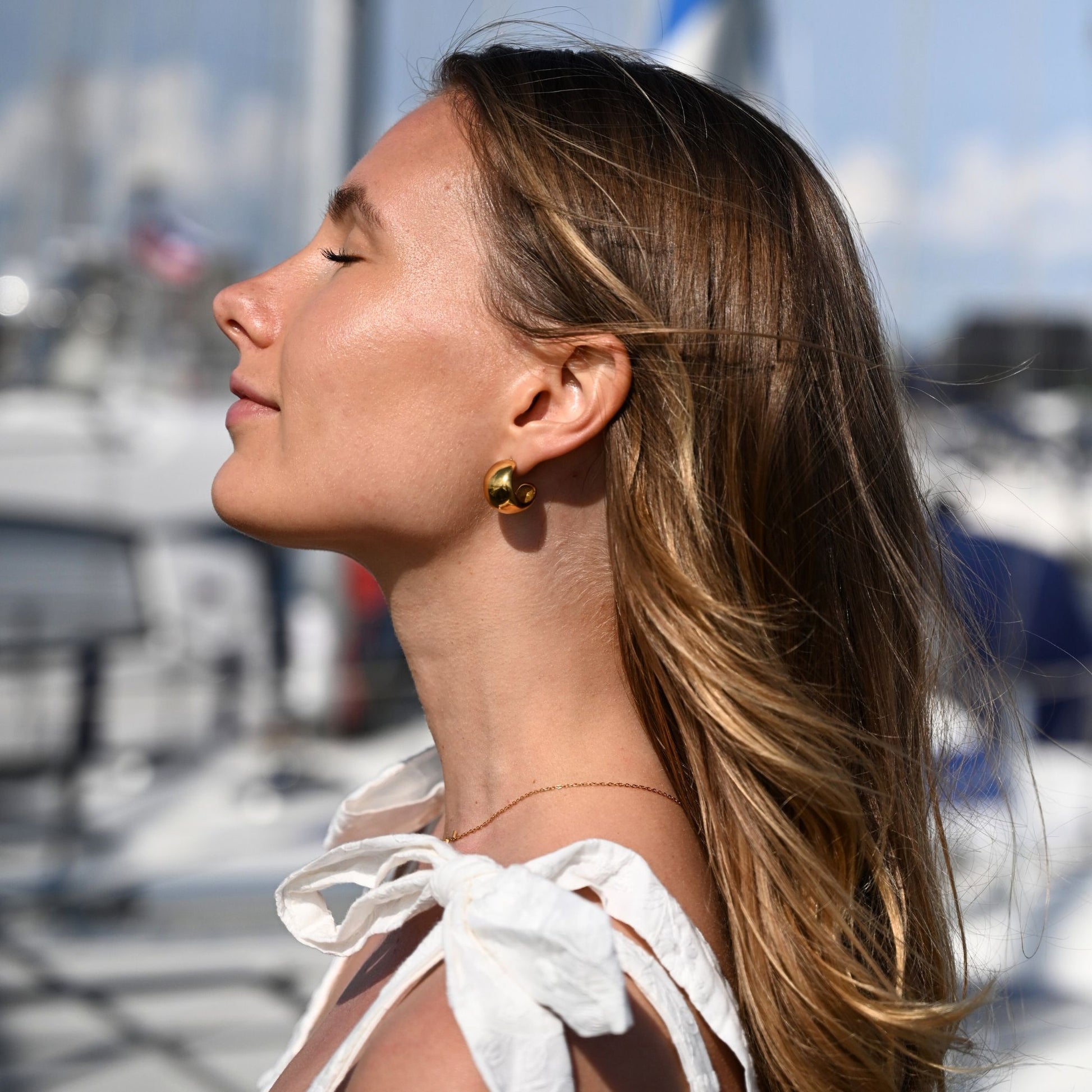 Designen är tidlös, precis som du när du bär Chunky Round Earrings. Trots sin större storlek upplevs dem lätta i örat och tynger inte ner. Ett par örhängen som gör varje outfit komplett.