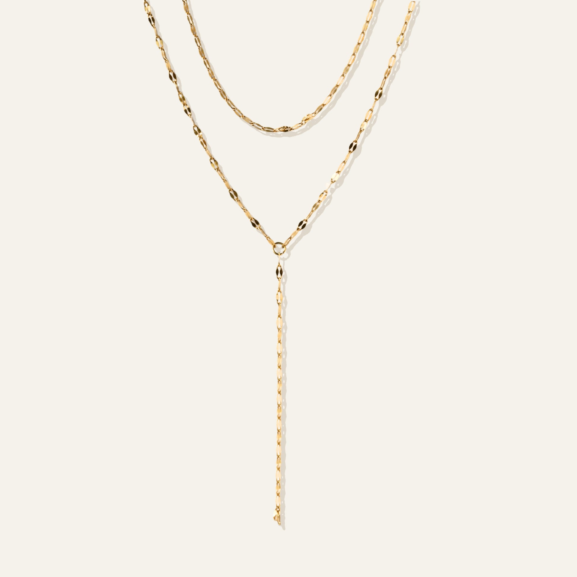 Vårt Double Cross Link Y-Necklace ger illusionen av att du bär flera olika halsband, trots att det bara är ett. En kedja som fångar upp reflektioner och kommer se till att ditt glow är starkast på pilates passet.