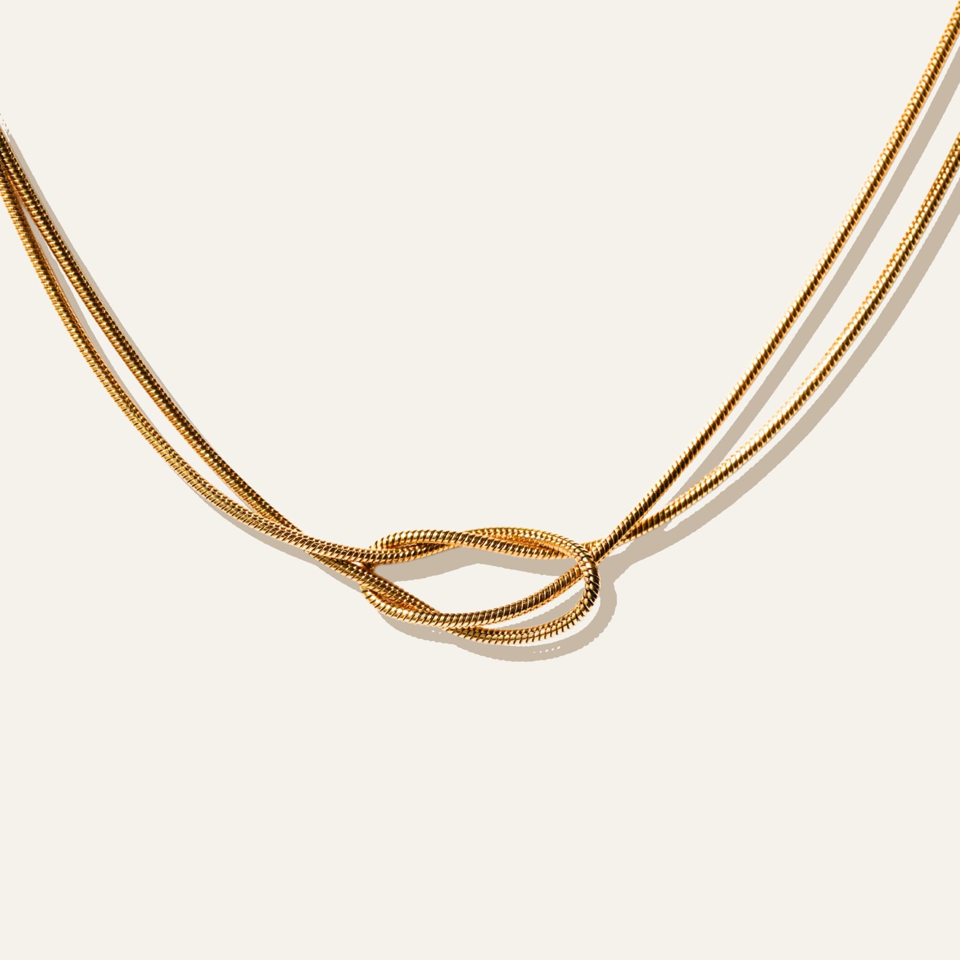 Double Knot Necklace är designat med två tunna runda snake chains som knyts ihop i en elegant knut. En modern tolkning av klassisk elegans – diskret men iögonfallande. Våra Chokers är kortare halsband som är fina att bära för sig själva, men även lätta att styla med fler halsband i olika längder.
