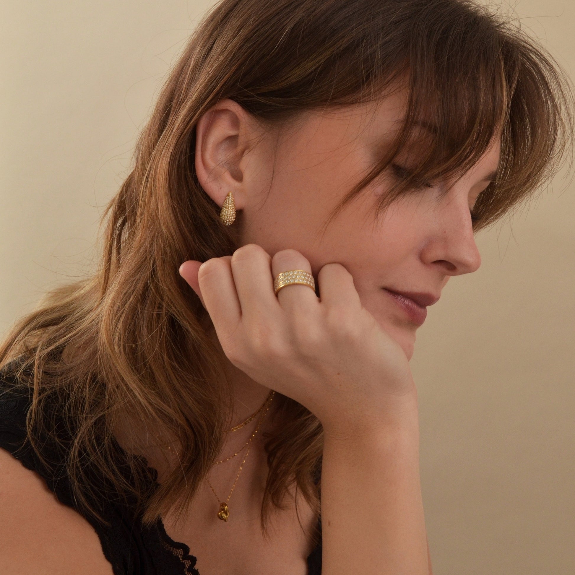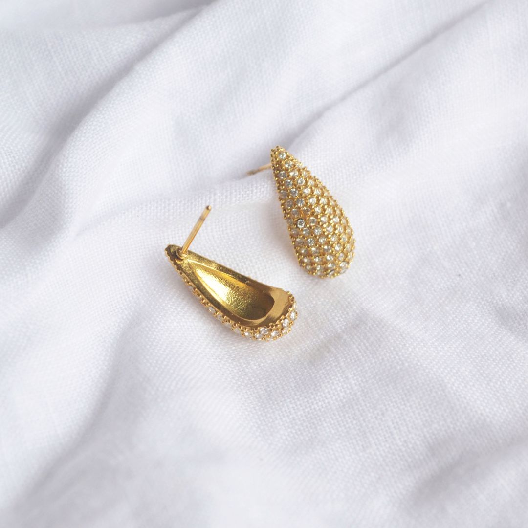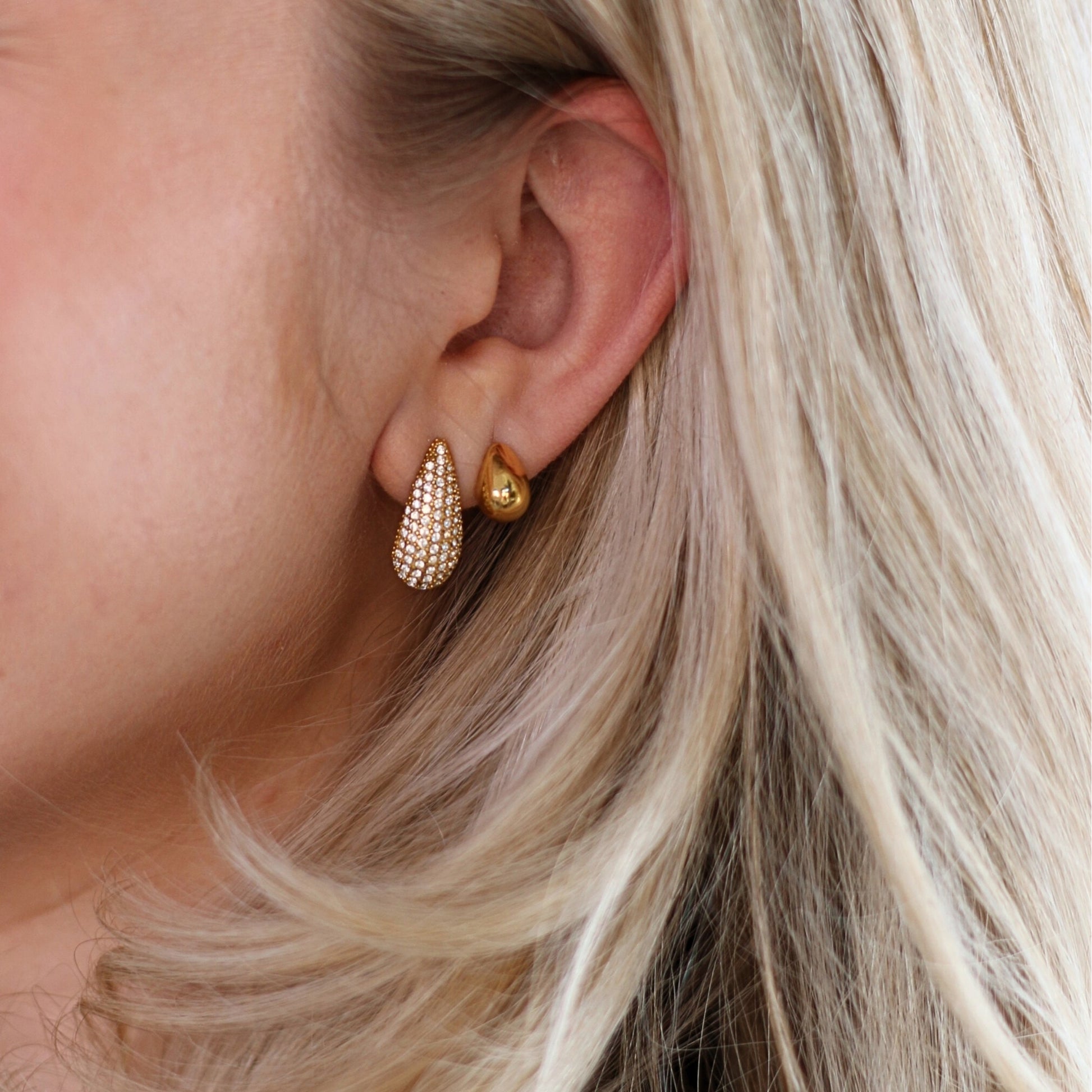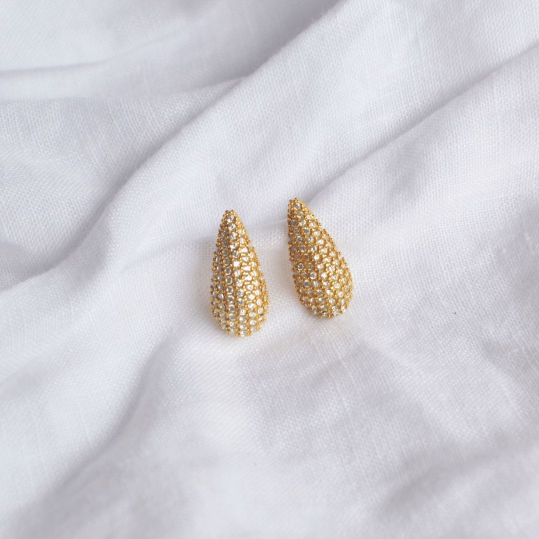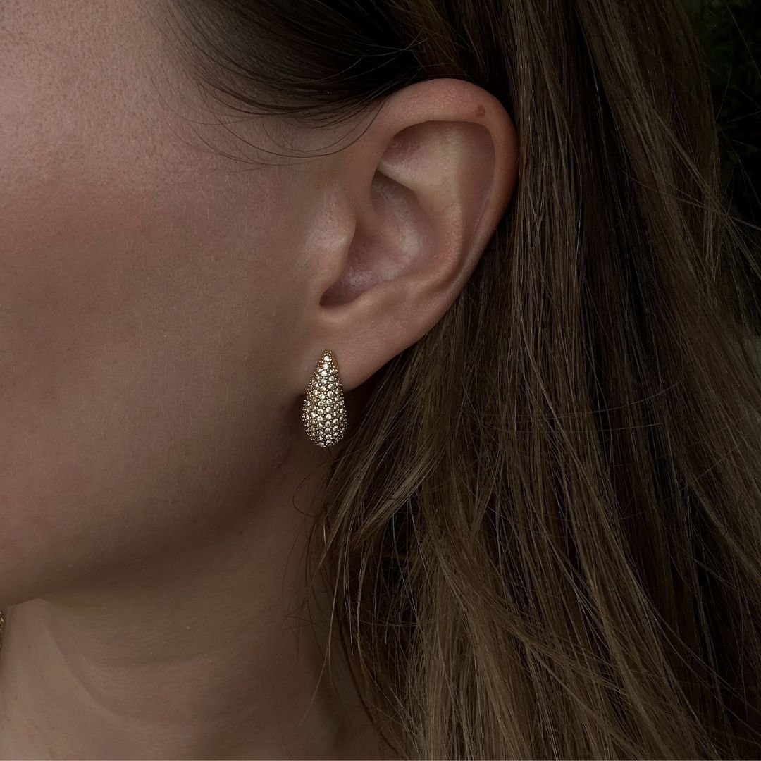 De perfekta örhängena att bära vid speciella tillfällen eller att ge bort i present. Drop Pave Earrings har små ziriconia kristaller som går längst hela framsidan av örhänget. Deras design gör dem lätta och de tynger inte ner örat. Finns i både guld och silverfärgade.