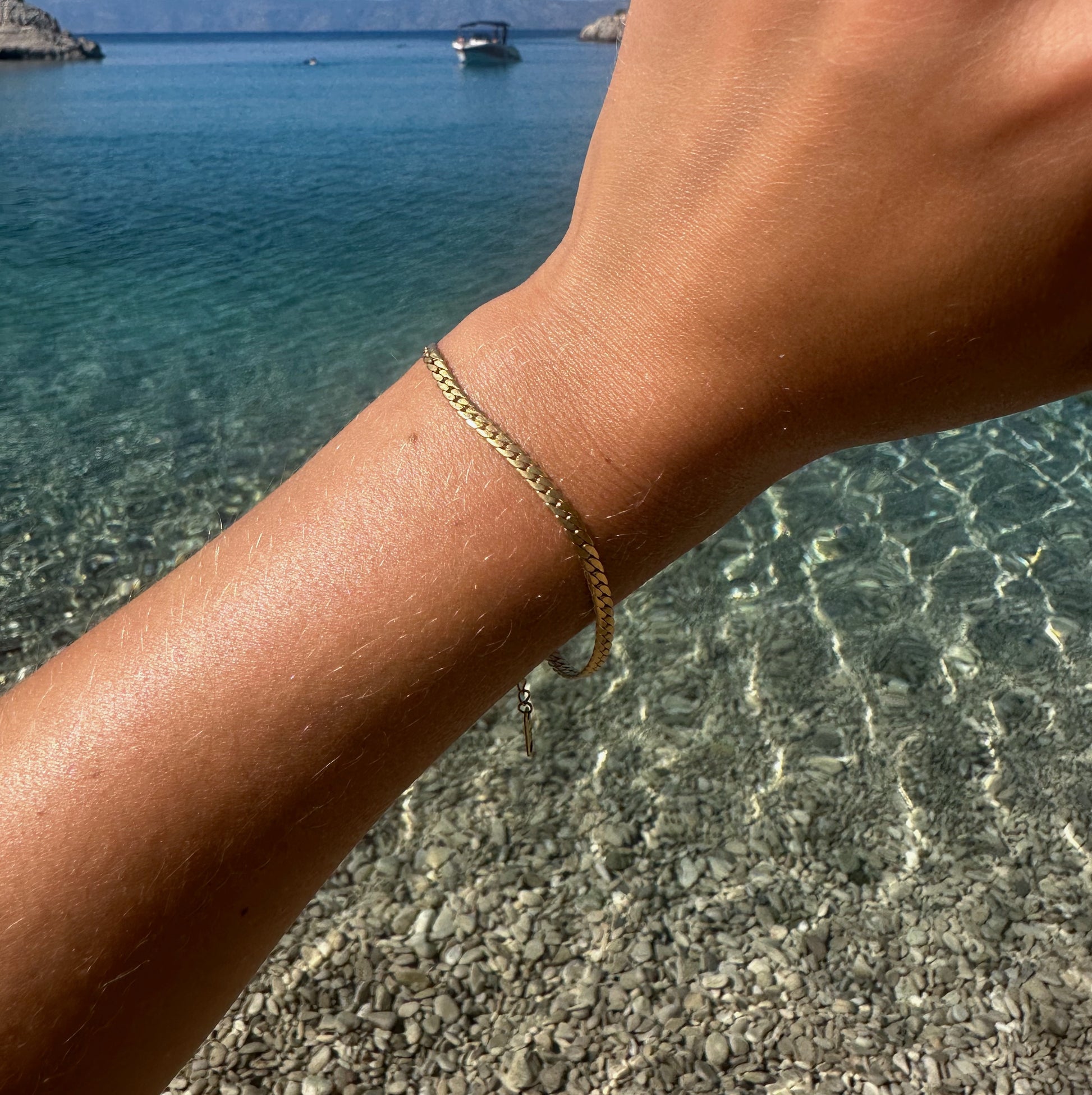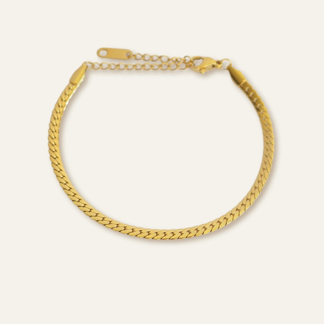 Flat Herringbone Bracelet är ett klassiskt och tidlöst armband. Det finns inga gränser för hur du kan styla din look med detta armband.
