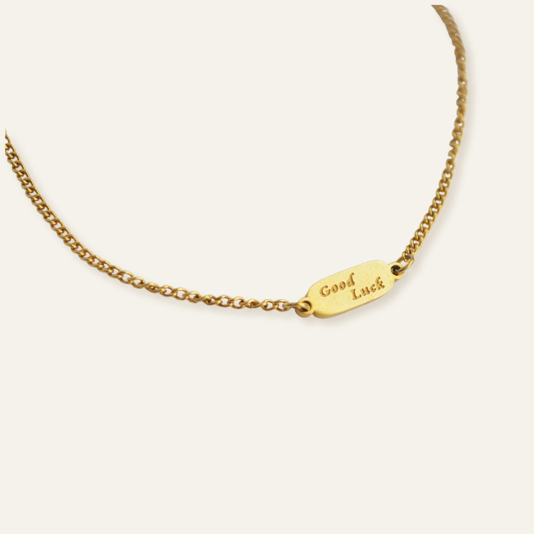 Noris Good Luck Charm Bracelet består av en tunn kedja som är dekorerad med en liten bricka. Brickan är graverad med orden "Good Luck". Den simplistiska desingen med det fina budskapet gör det perfekt för din vardagslook.