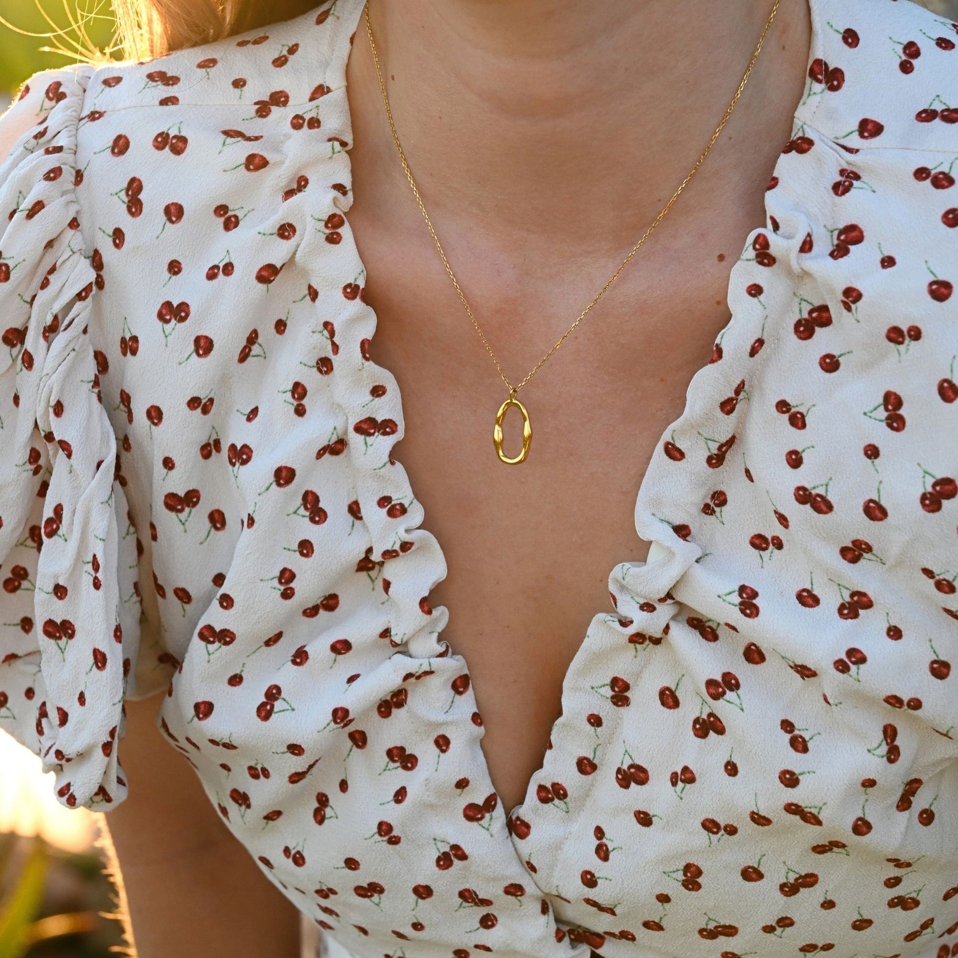 Oval Pendant Necklace är för dig som gillar klassisk design. Halsbandet består av en tunn kedja och en oregelbunden oval berlock. Klassisk, tidlös och passar till precis allt.