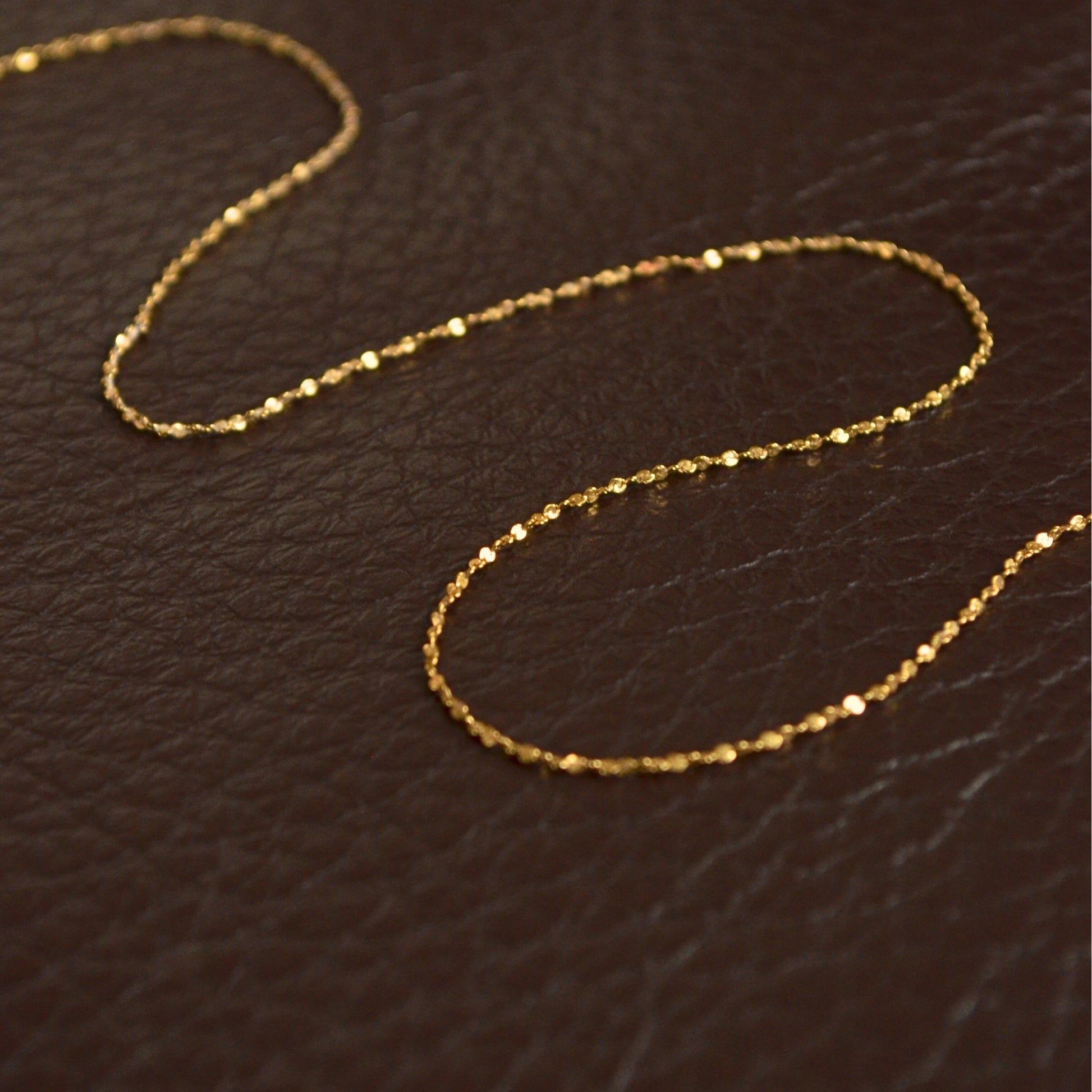 Den är tunn och diskret,men glittrar jätte mycket. Fantastisk fin kedja.Älskar älskar!