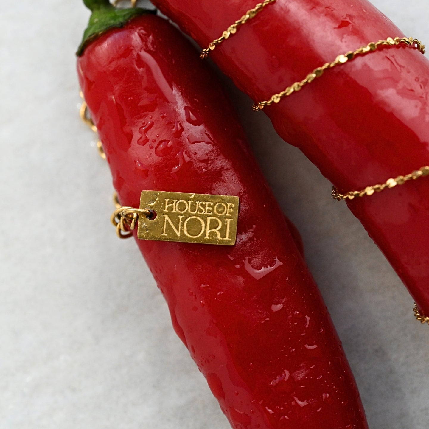 Alla smycken från House of Nori är tillverkade av Rostfritt Stål och har en 18K guldplätering. De är pläterade med den senaste terkniken som kallas PVD, vilket tilsammans med materialvalet gör alla smycken vattentåliga.