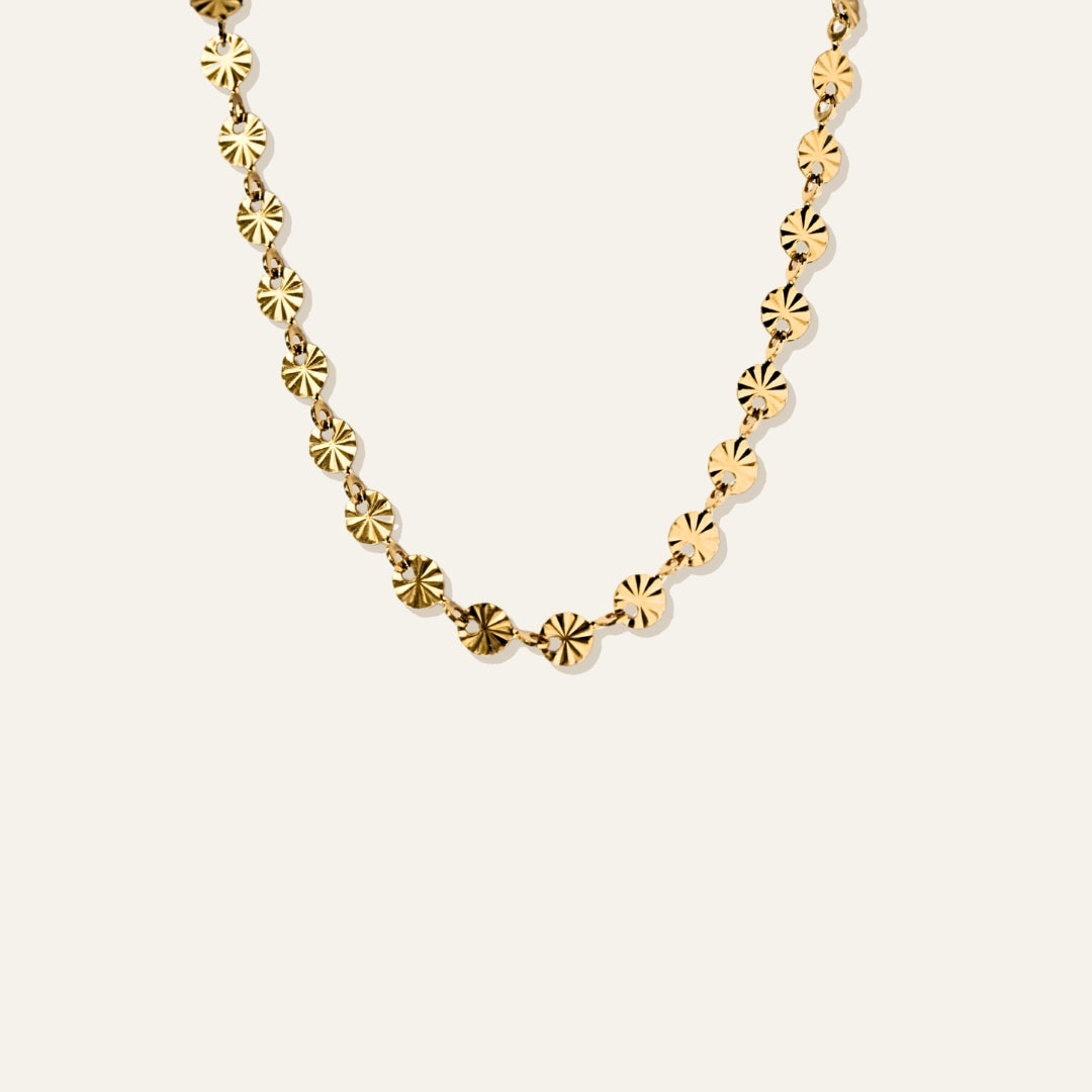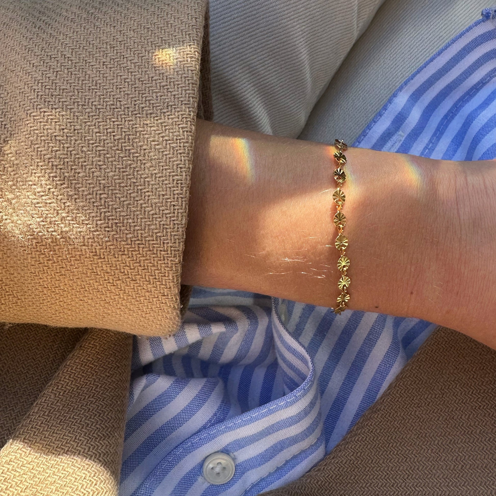 Round Sun Plate Bracelet består av runda räfflade/ribbade plattor som ger en otroligt glans och reflektion. Funkar fint att matcha med fler armband eller bäras ensamt. Ett unikt armband som kan bäras vid alla tillfällen.
