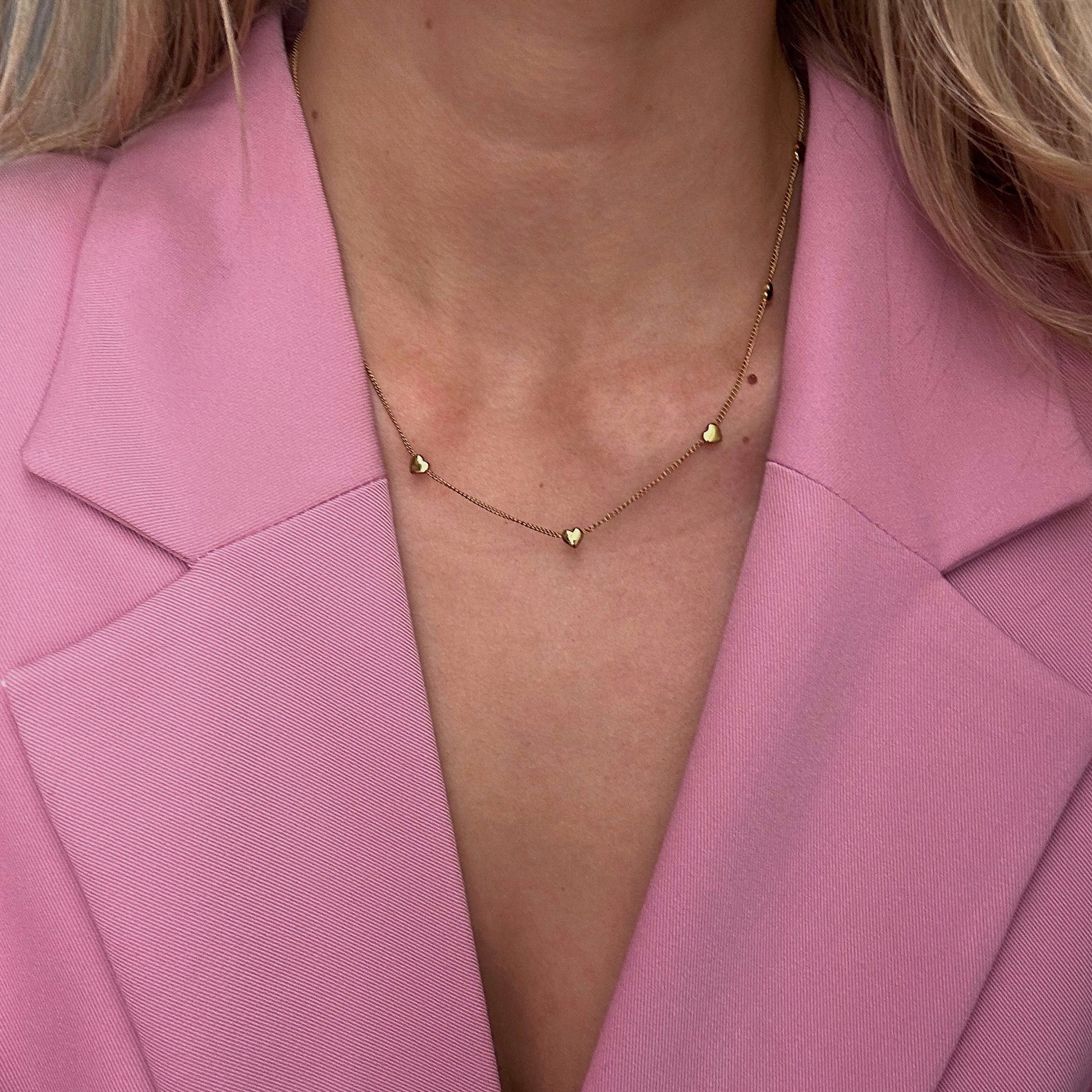 Vårt Small Hearts Necklace är det perfekta halsbandet för alla tillfällen. Det består av små minimalistiska hjärtan som lyfter din vardagliga look.