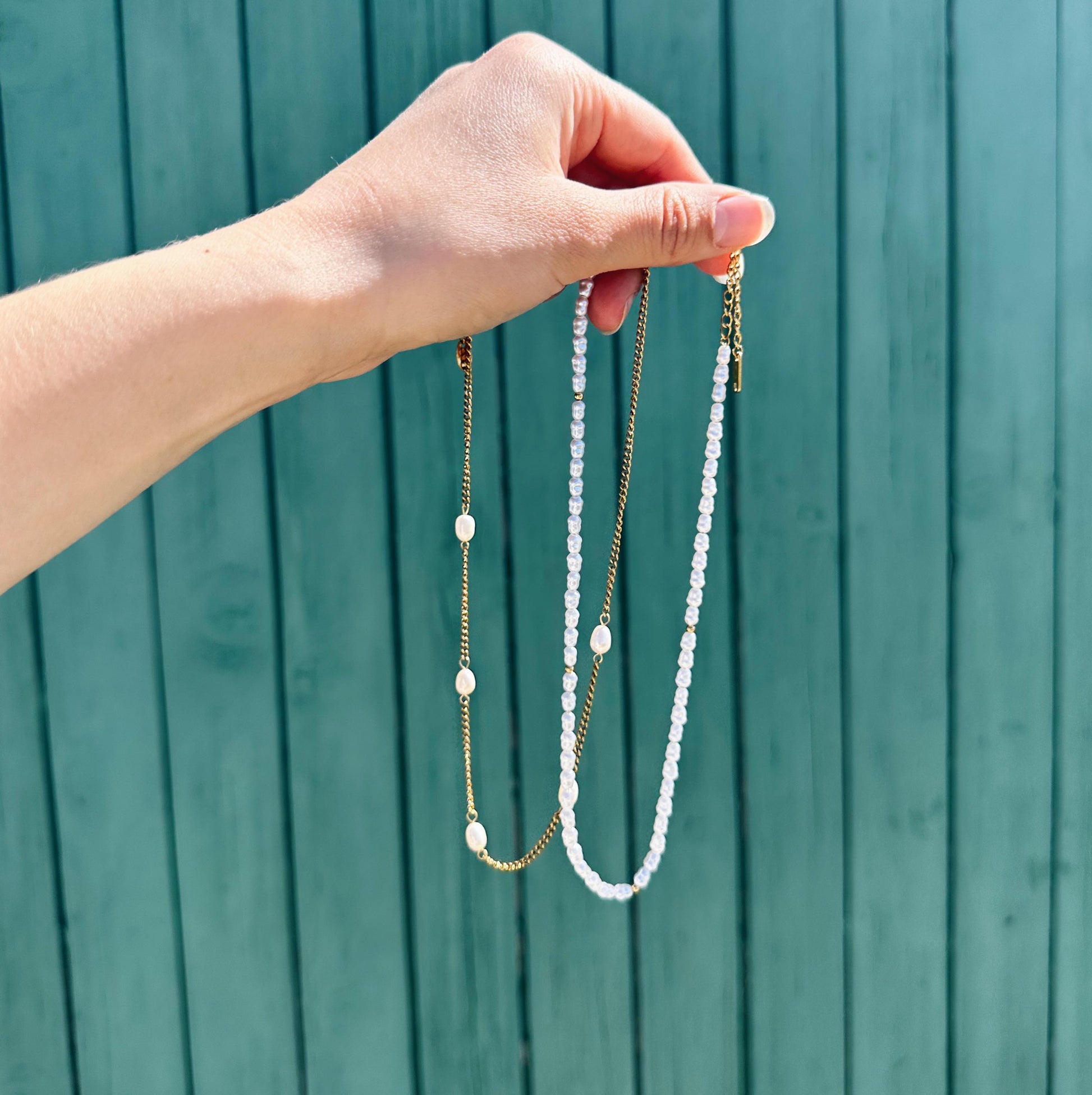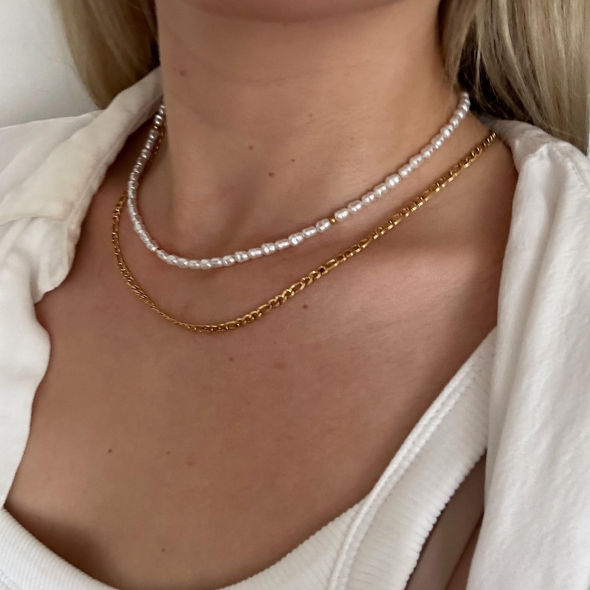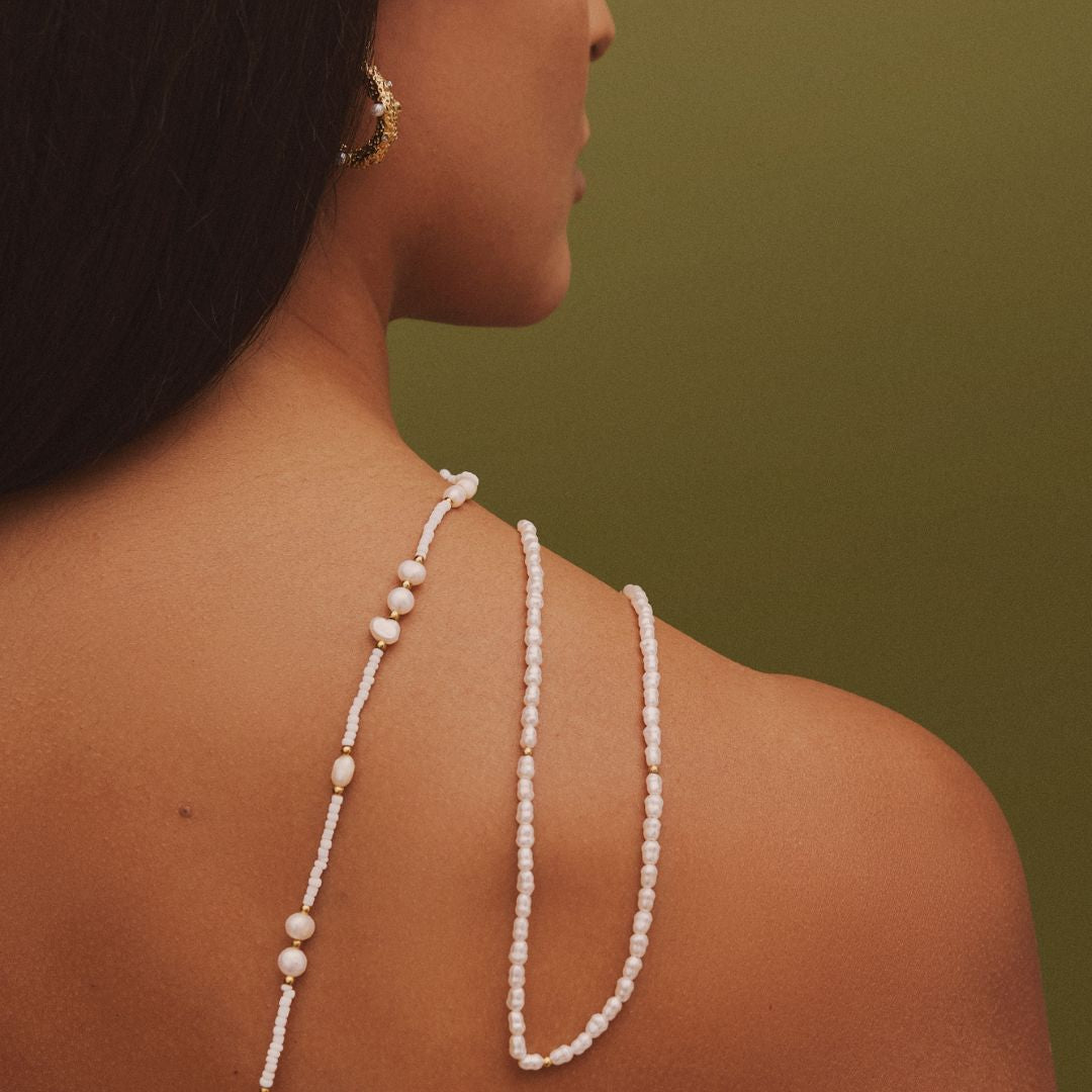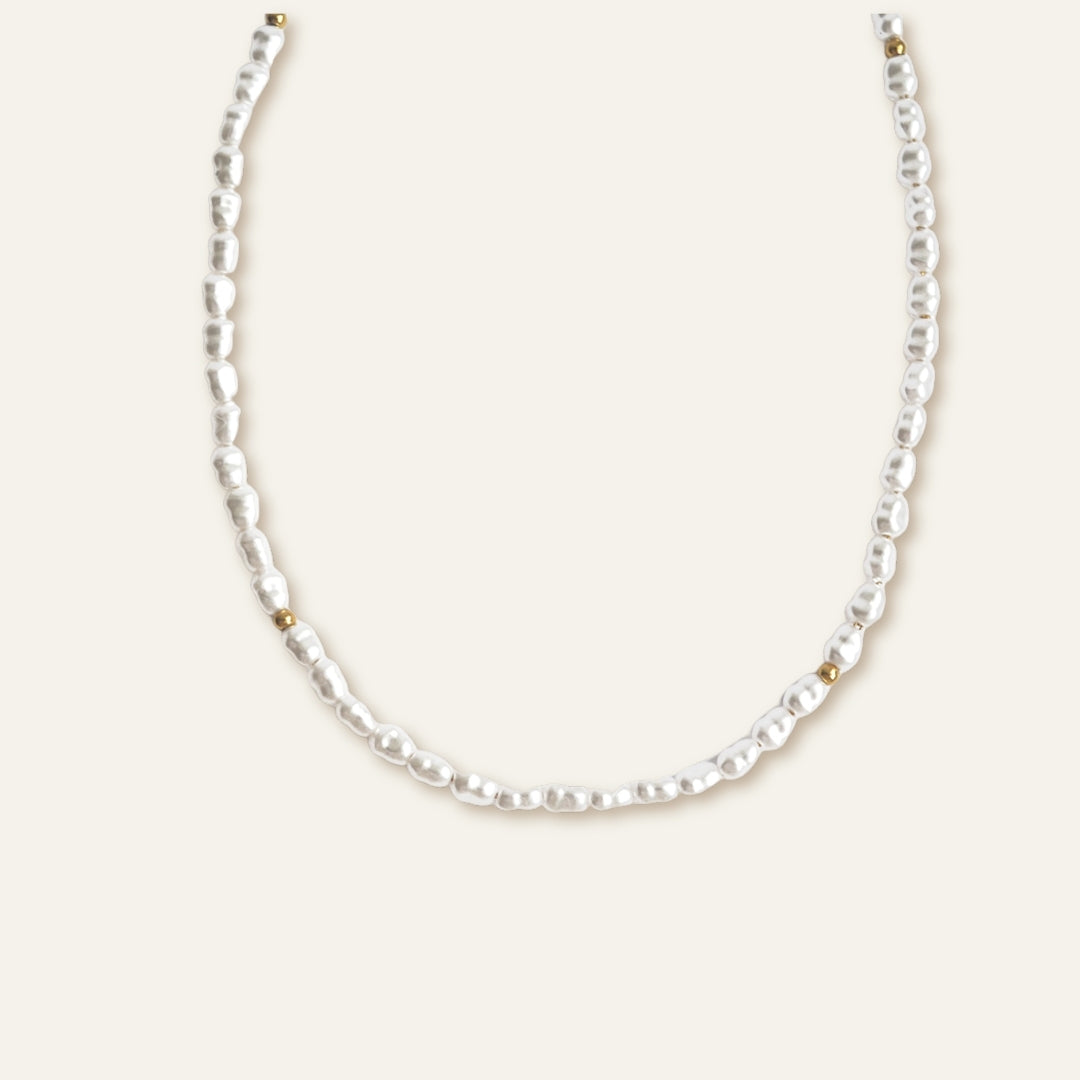 Noris Small Pearls Necklace är det perfekta halsbandet för soliga sommardagar. Det är gjort av små vita pärlor med fyra gyllene pärlor som ger halsbandet en trendig look.