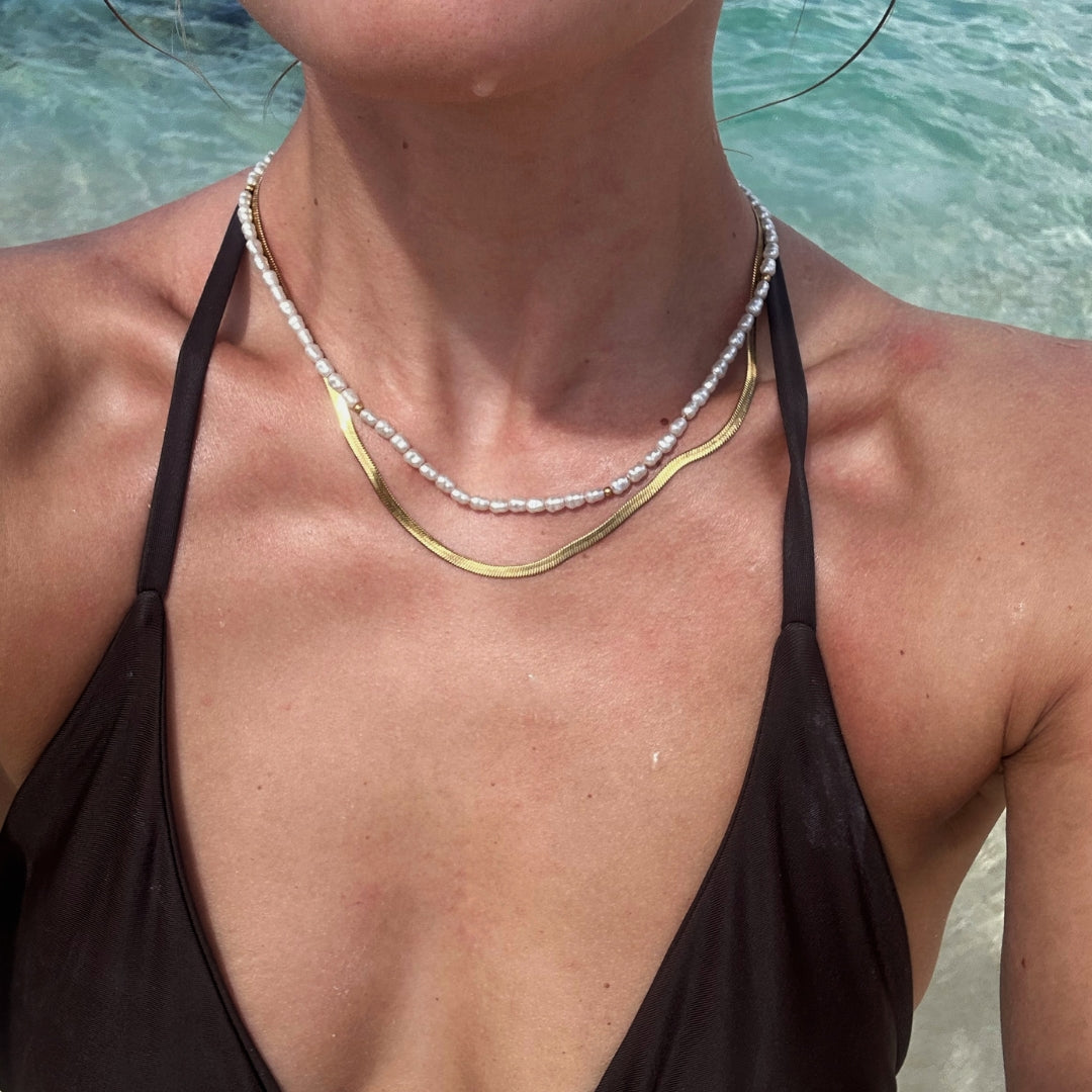 På House of Nori förstår vi vikten av både vackra och praktiska smycken. Därför är alla våra smycken tillverkade av högkvalitativt rostfritt stål, vilket gör dem vattentåliga. Du kan därför duscha, träna, sova, dansa eller spendera hela dagen på stranden med dina smycken på. Detta gör att du aldrig behöver kompromissa med din personliga stil oavsett aktivitet.