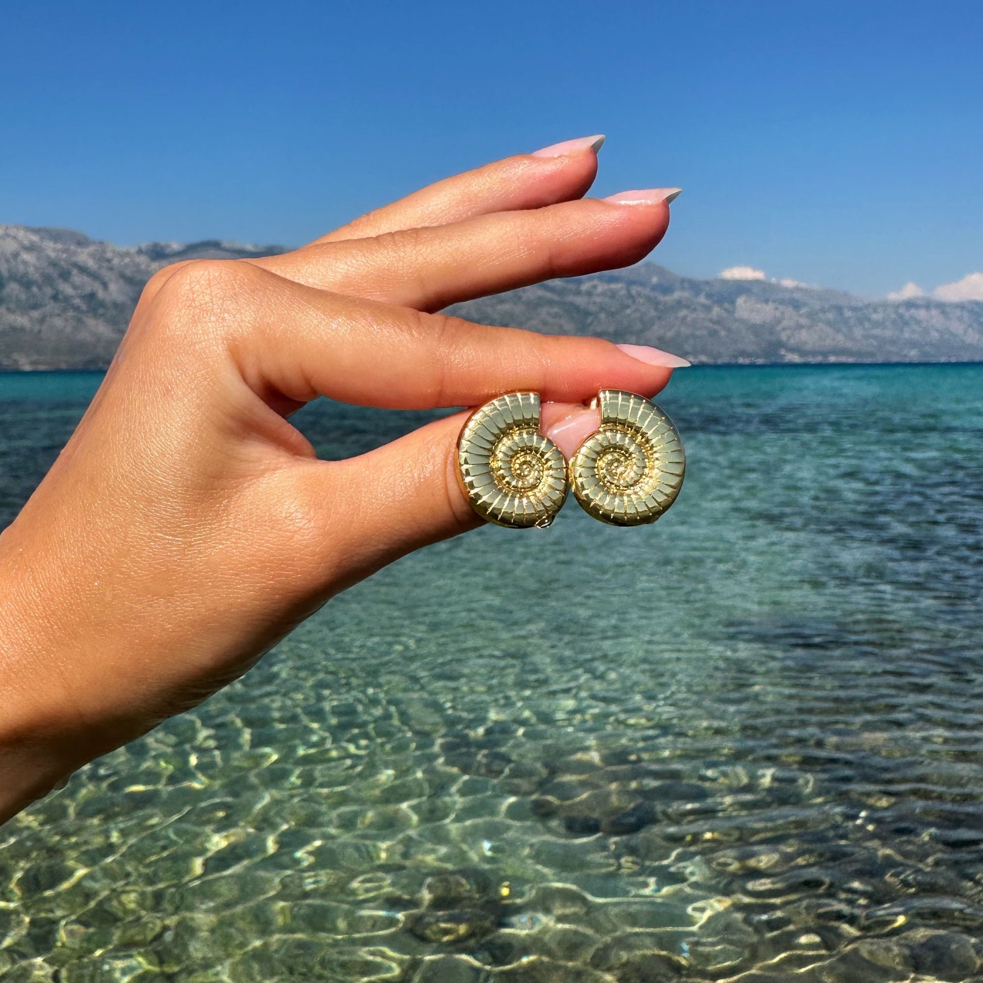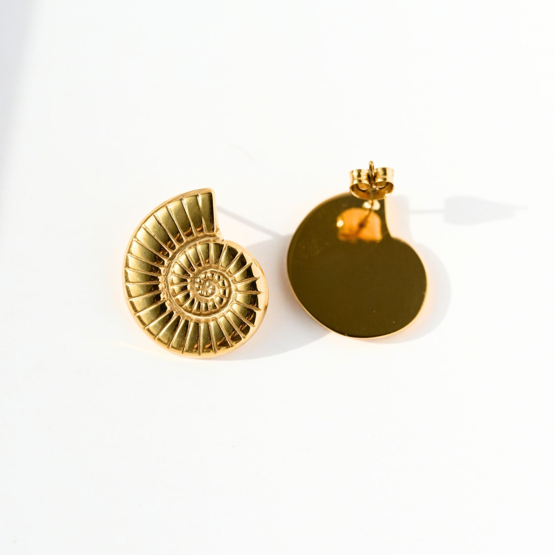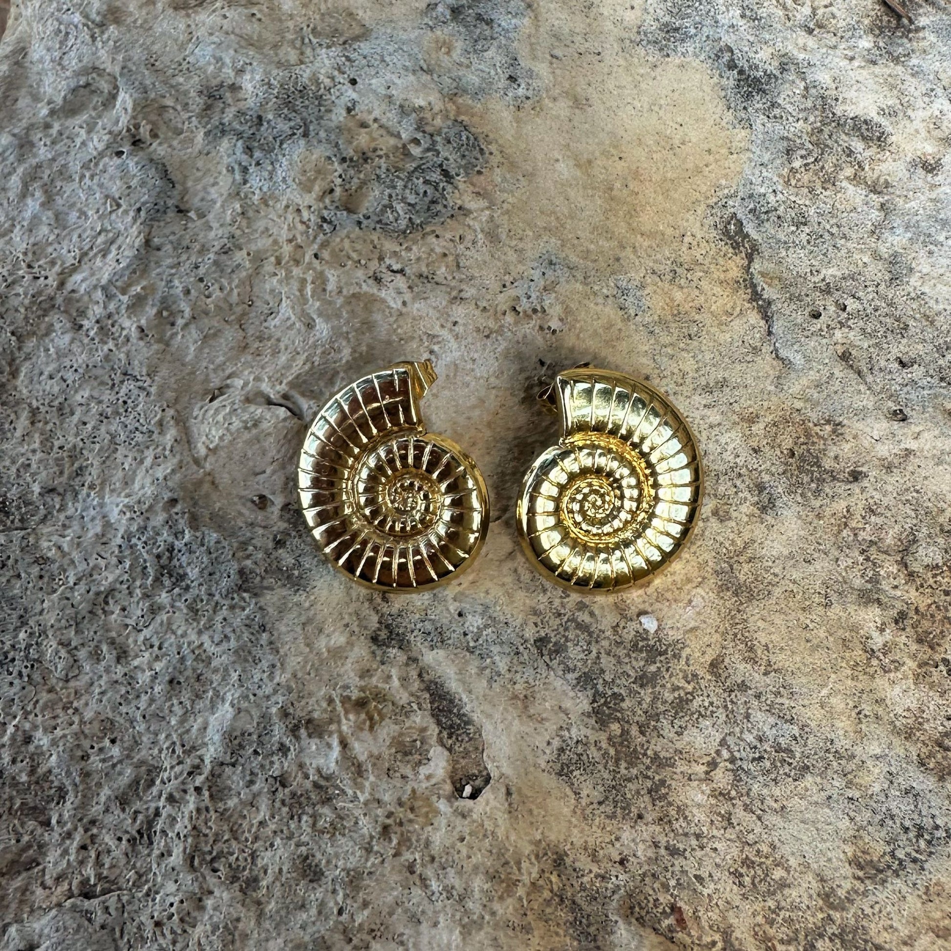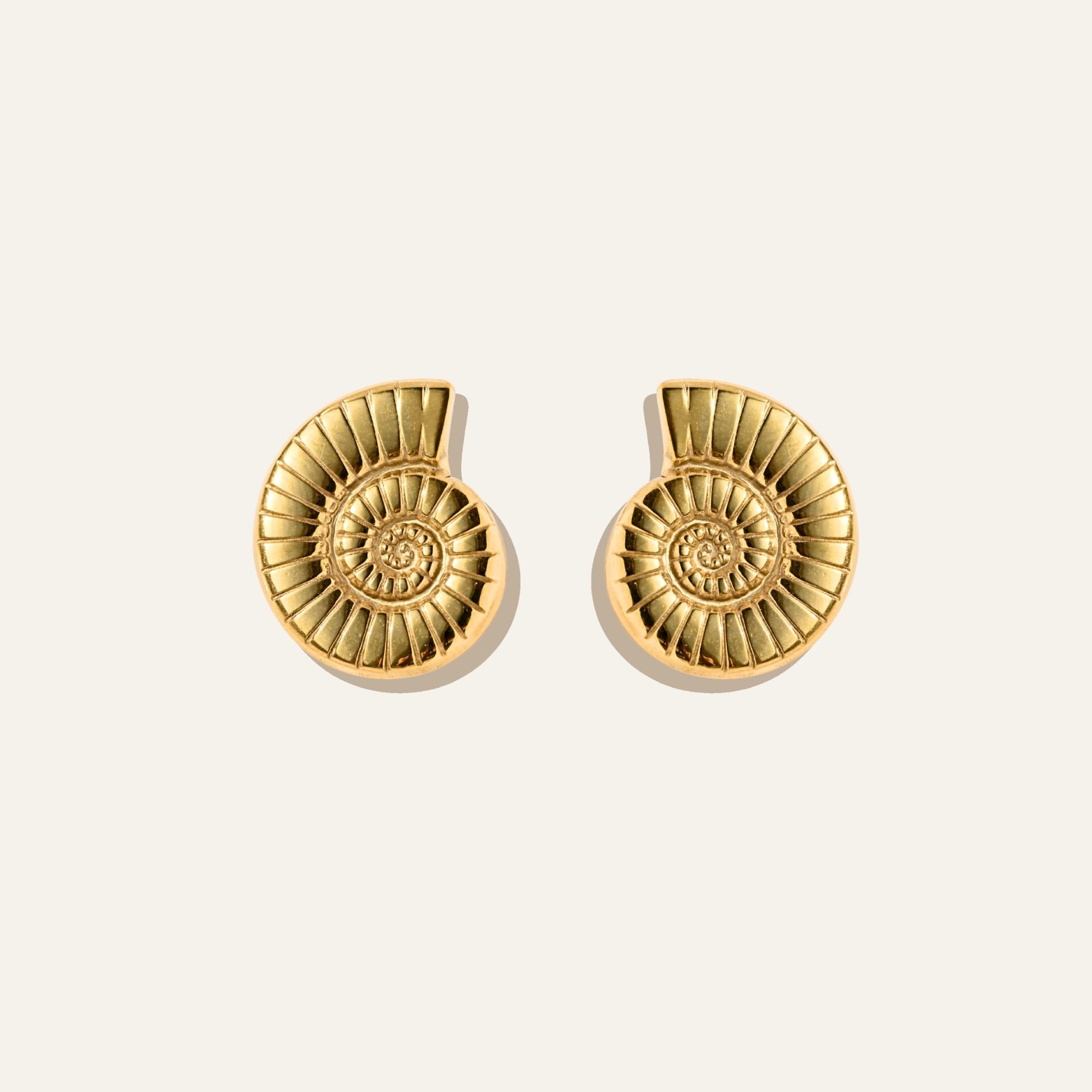 Spiral Shell Earrings är gjorda för att ge din look en touch av havet. Den gyllene spiralformen fångar ljuset fint och ger både värme och karaktär. Lätta att bära till alla tillfällen från soliga stranddagar till en dag på kontoret.
