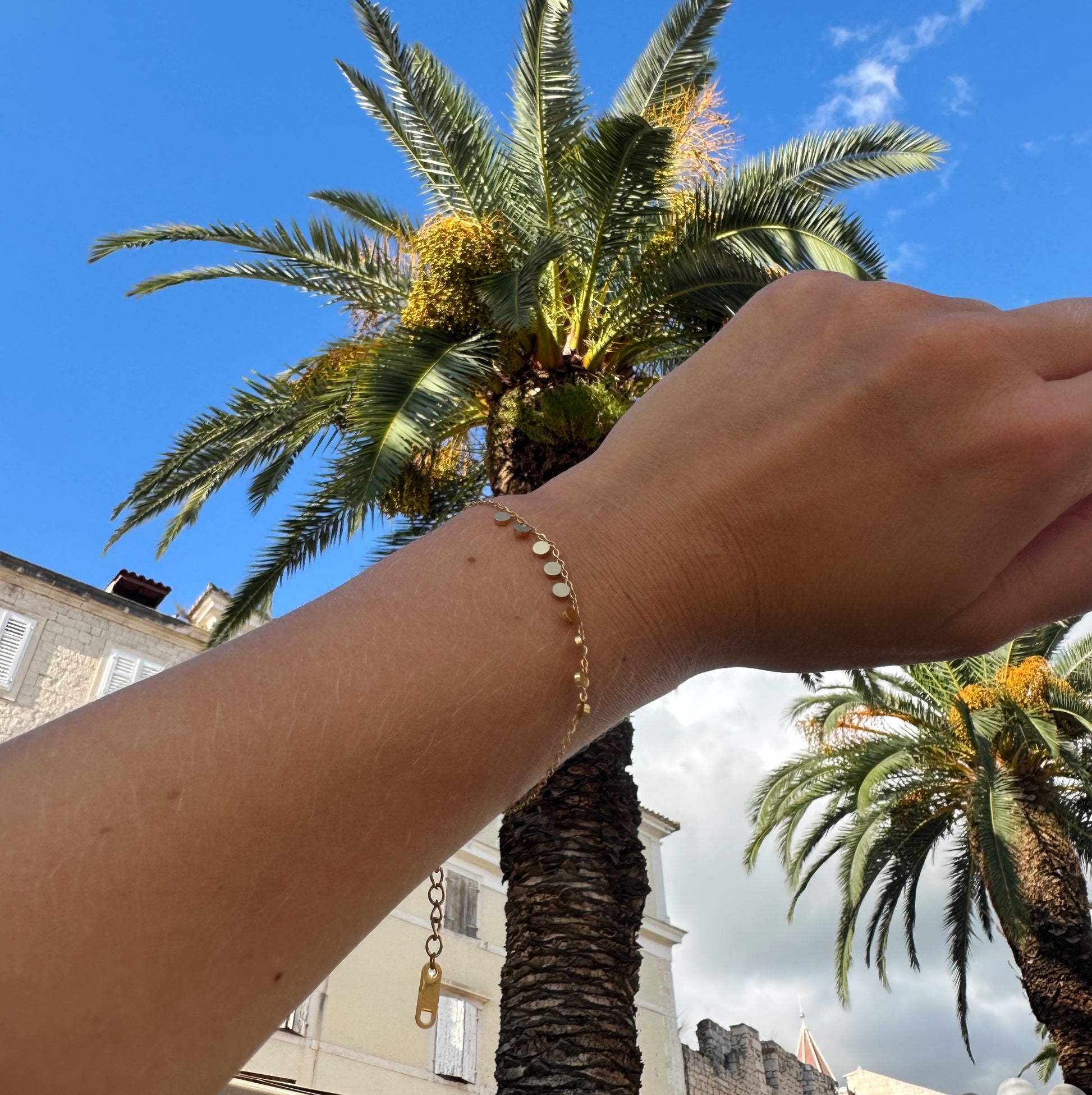Sprinkles Bracelet är Noris personliga favoritarmband. Det är en tunn kedja med små strösselliknande berlocker vilket ger armbandet en söt känsla. Kombinera det med Sprinkles Necklace och din girls night look är komplett.