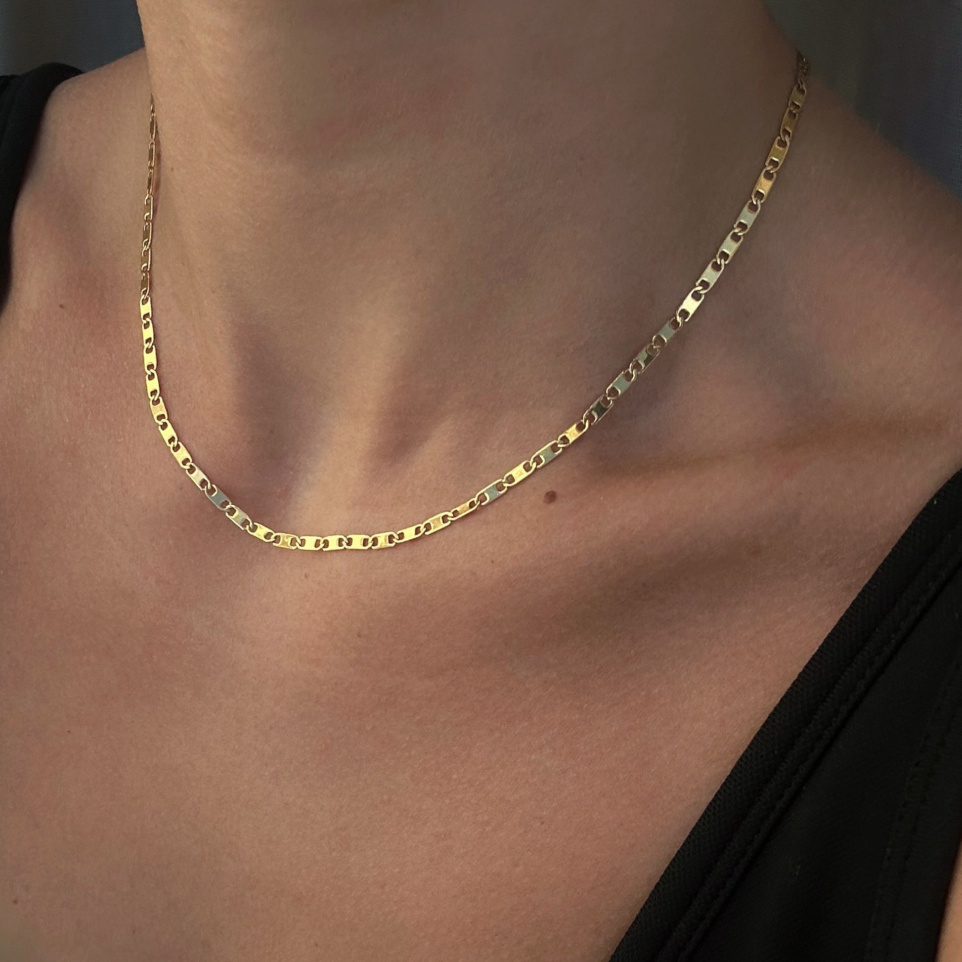 Ett halsband med ett otroligt glow, så beskriver vi bäst vårt Square Link Choker. Våra Chcokers är kortare halsband som är fina att bära för sig själva, men även lätta att styla med fler halsband i olika längder.