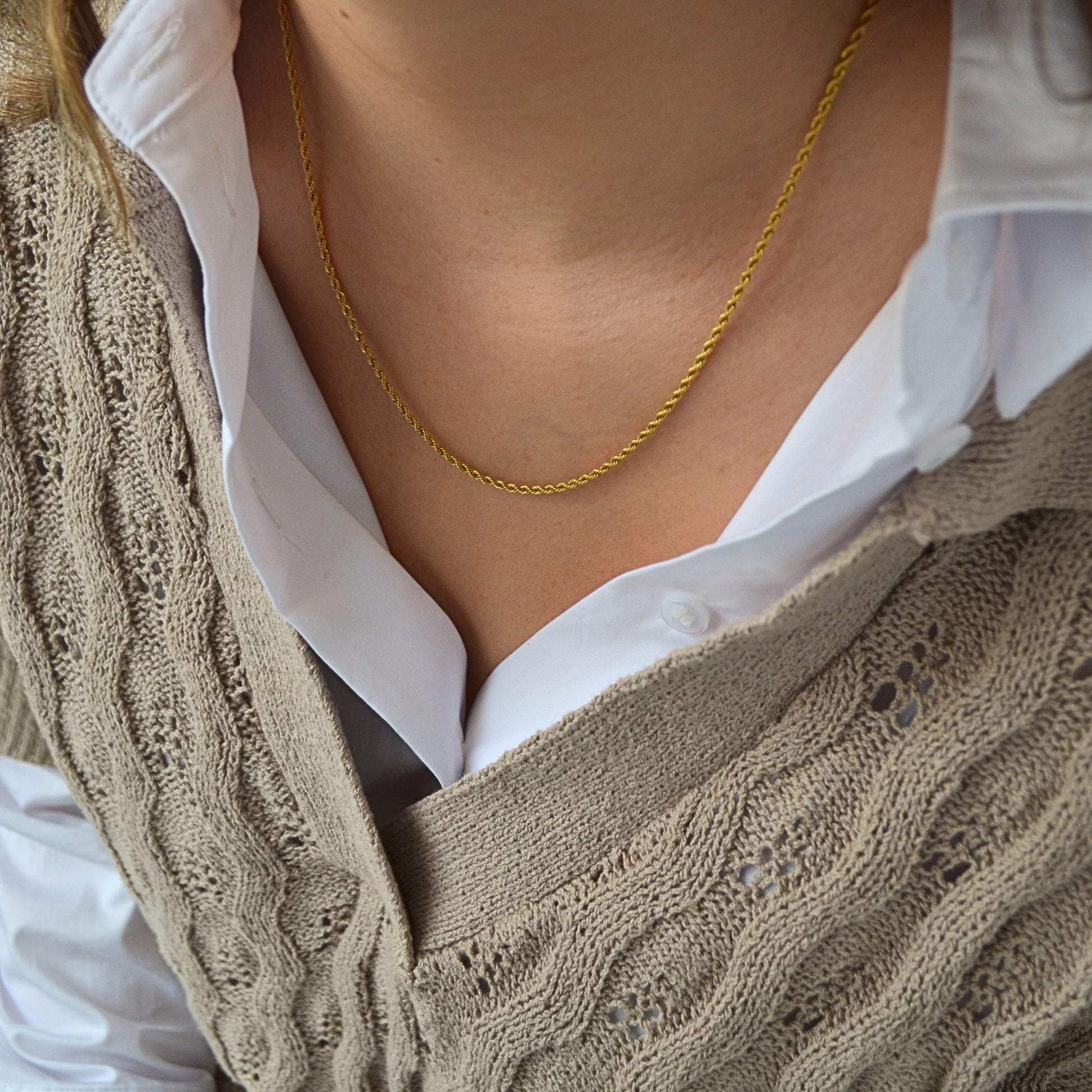 Om du letar efter en tidlös kedja så är Twisted Rope Chain Necklace helt rätt val. Halsbandet består av en kedja som är twistad och påminner om ett rep. Minimalistisk och funkar till precis alla tillfällen.