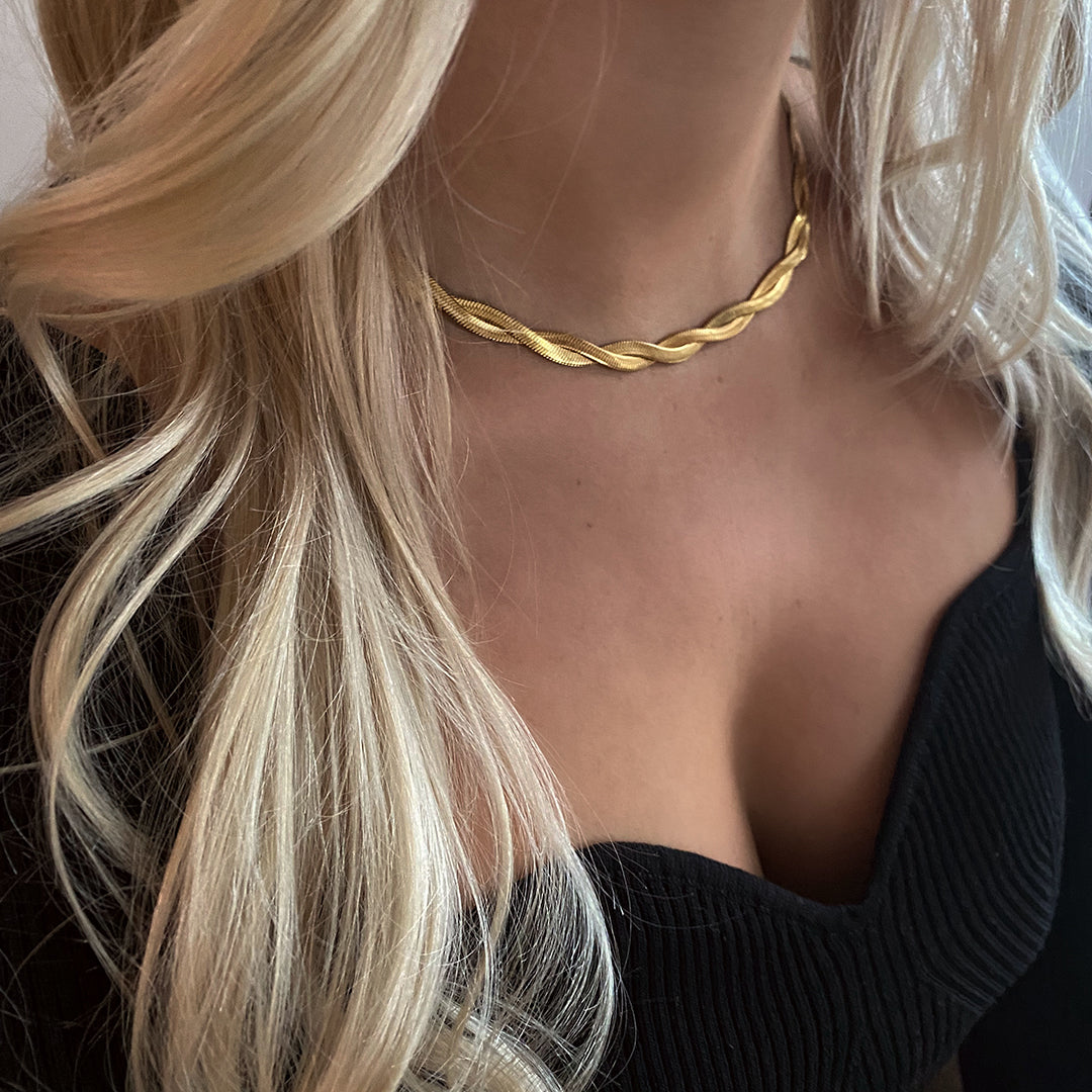 Noris Twisted Snake Chain Necklace är en mer vågad version av Snake Chain Necklace. Halsbandet har en unik design med två flätade snake chains vilket gör det till det perfekta valet när du vill sticka ut på festen.