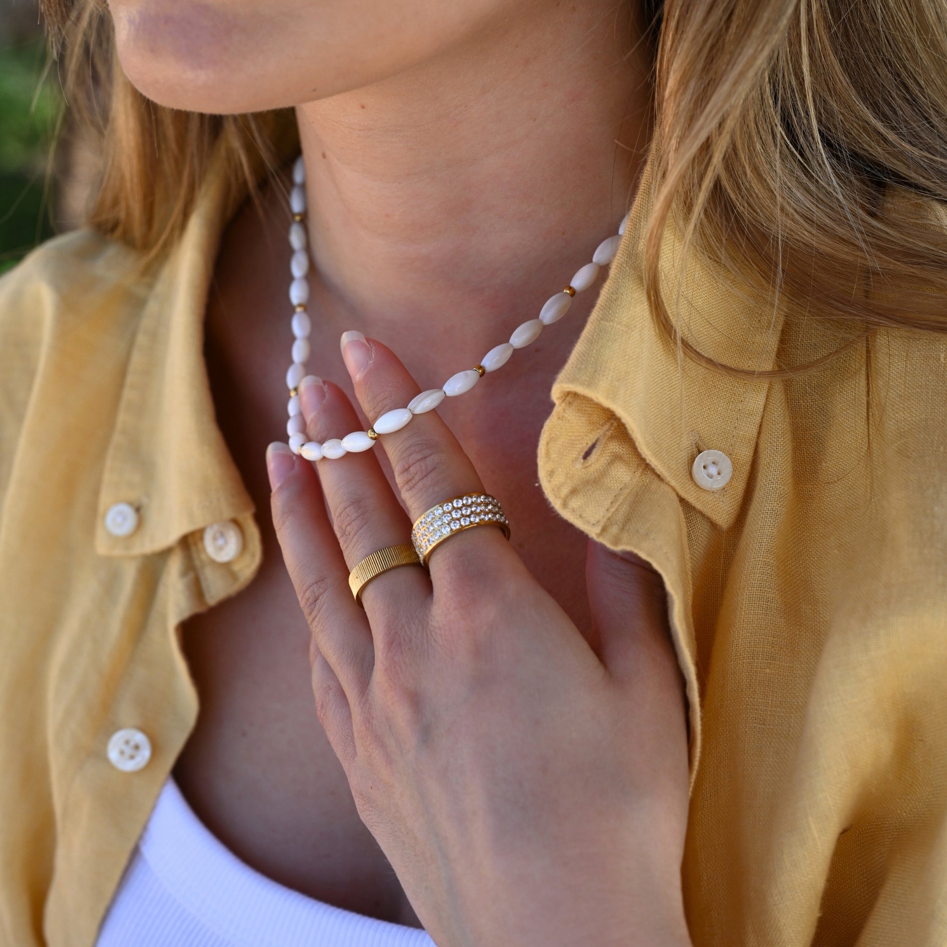 På House of Nori förstår vi vikten av både vackra och praktiska smycken. Därför är alla våra smycken tillverkade av högkvalitativt rostfritt stål, vilket gör dem vattentåliga. Du kan därför duscha, träna, sova, dansa eller spendera hela dagen på stranden med dina smycken på. Detta gör att du aldrig behöver kompromissa med din personliga stil oavsett aktivitet.